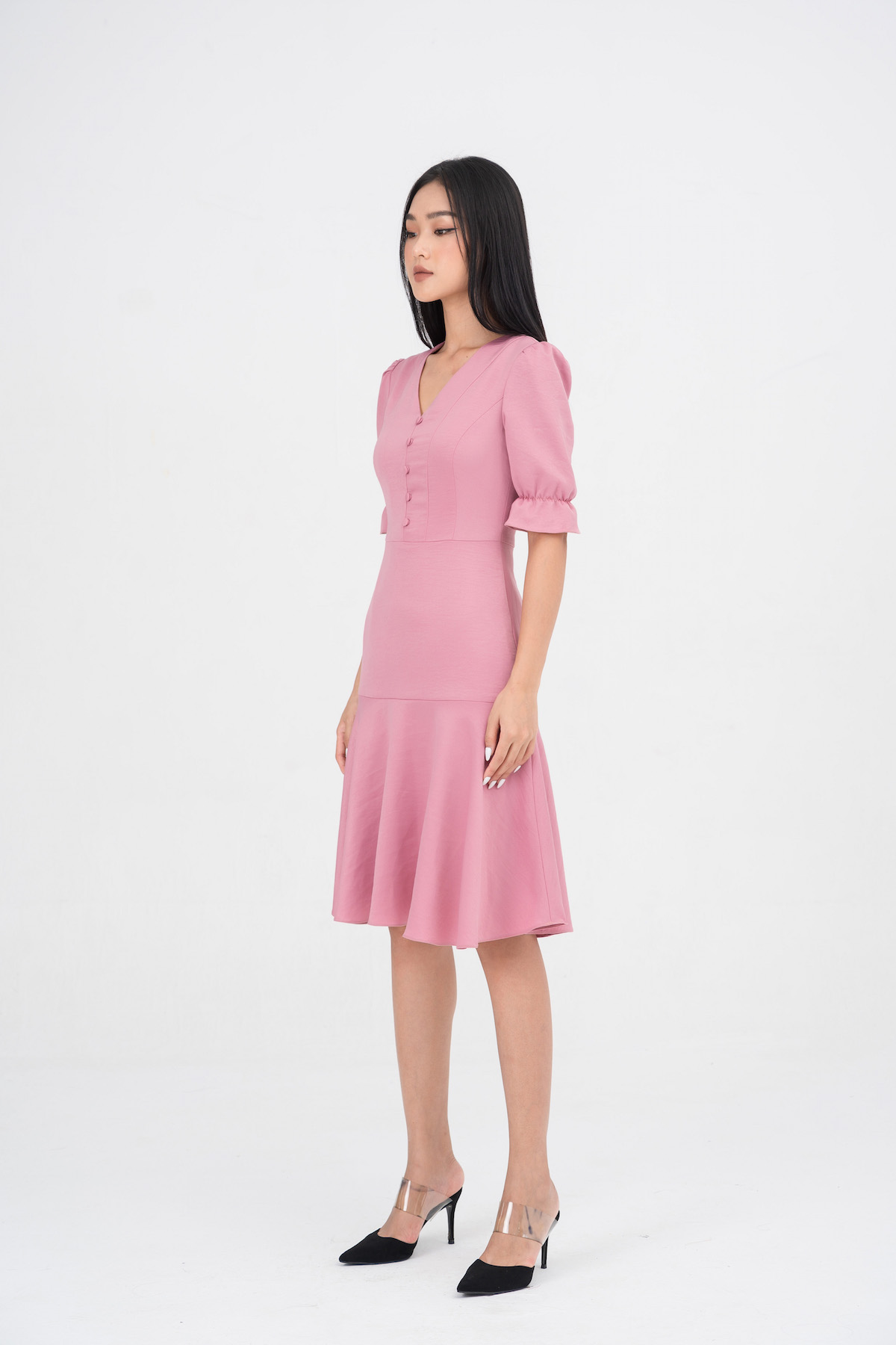 ✨De Leah - Đầm Xoè Tay Lỡ Cúc Trai H