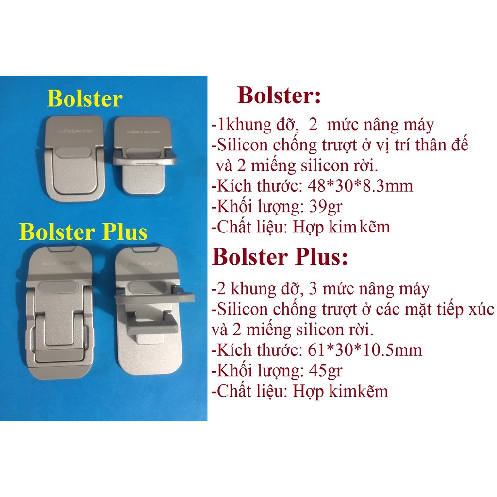 Bộ giá đỡ Điện thoại/Macbook/Laptop NILLKIN Bolster Mini Portable Stand Chất liệu hợp kim Kẽm cao cấp, bền, kiểu dáng mini Bảo vệ cột sống và cổ, tạo cảm giác thoải mái hơn khi gõ