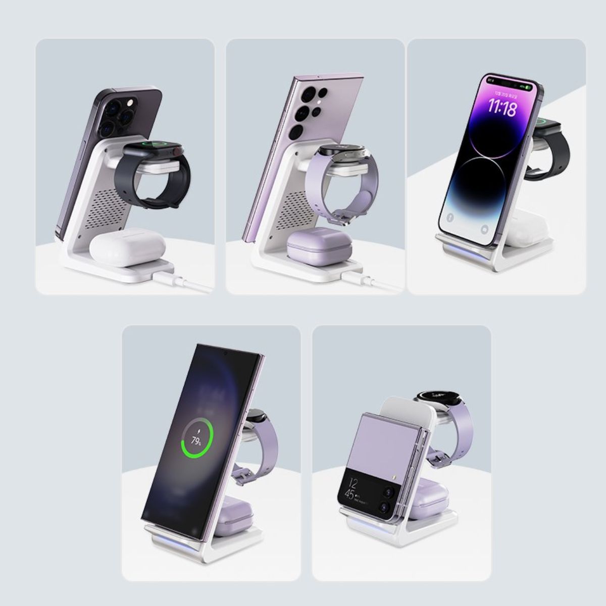Lực hút nam châm tăng 20% so với các sản phẩm thông thường, giữ chặt thiết bị tương thích ngay cả khi di chuyển. Bạn có thể sạc ba thiết bị cùng lúc với một