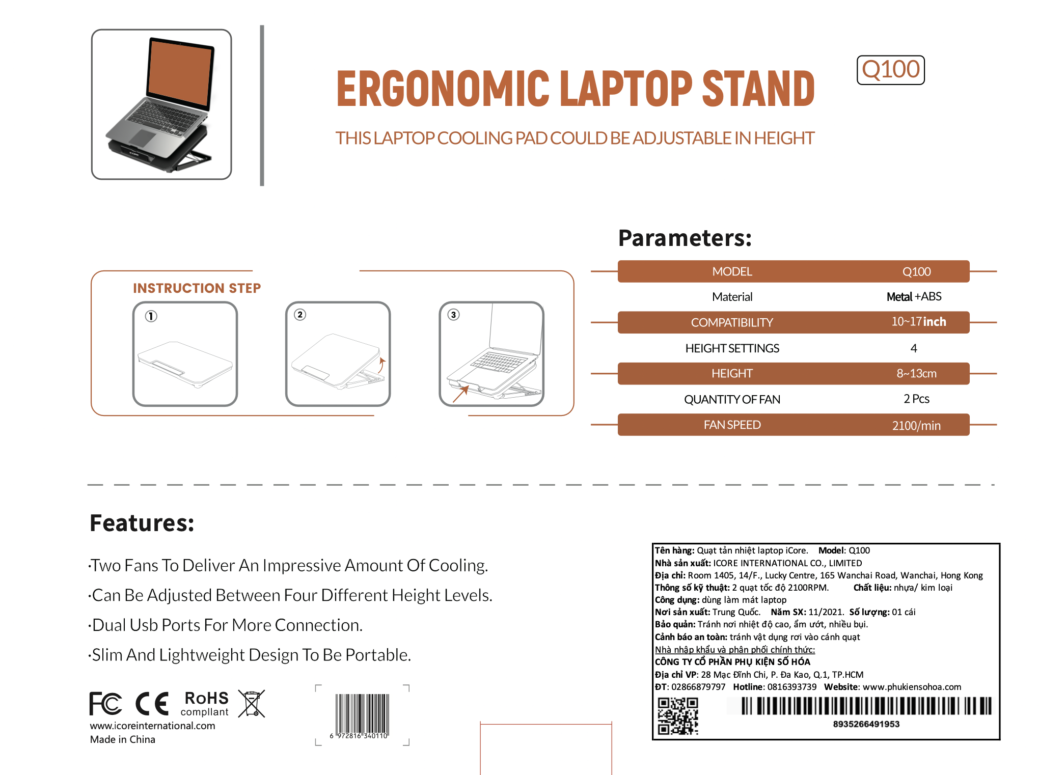 ✨Đế tản nhiệt laptop iCore Q100 - Hàng Chính Hãng