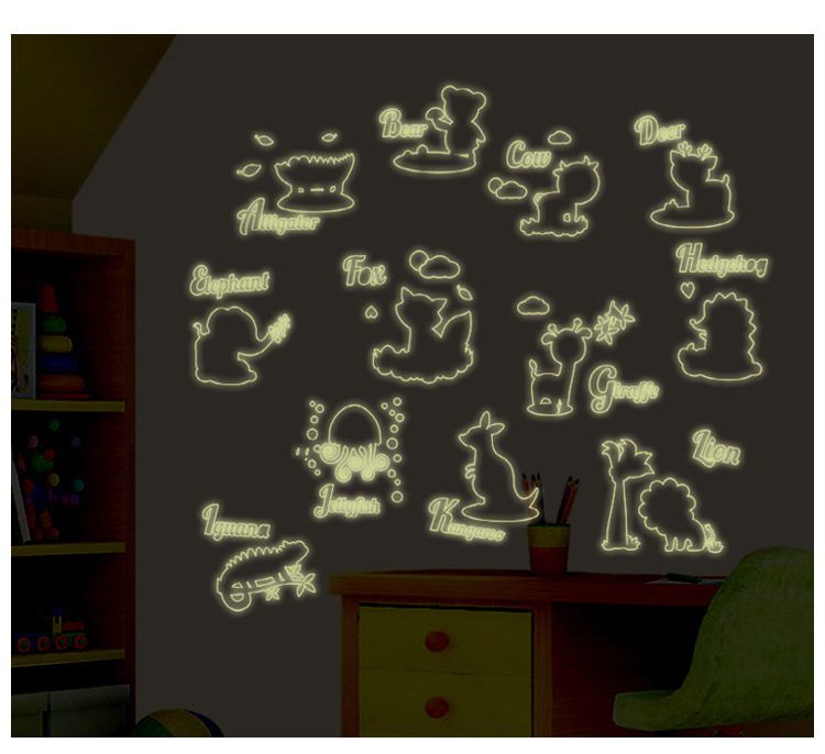 Decal dán tường Dạ quang đàn thú với các hình con vật thân thiện với bé, các tên động vật bằng tiếng anh giúp phụ huynh có thể cho bé sớm nhận biết về mặt chữ. Và đặc biệt là dạ quang ban đêm sẽ bé yêu thích căn phòng của mình nhiều hơn. Chất liệu nhưa PVC vinyl cao cấp thân thiện với môi trường, không thấm nước. Bạn có thể chà, quét bụi bẩn.Decal dán tường amyshop có thể dán trên tường, gạch men,thủy tinh, gỗ và bề mặt phẳng khác.