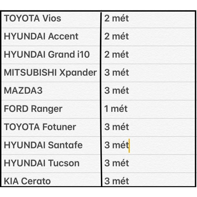 - Chiều dài: Tùy theo nhu cầu, có bảng kích thước cho các dòng xe phổ biến. Ứng Dụng