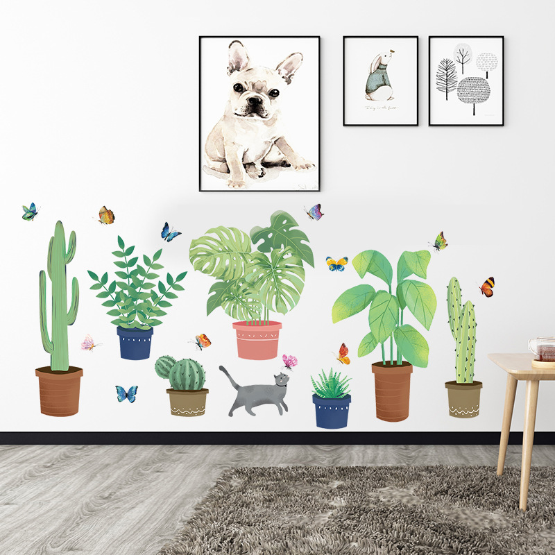 ✨Decal giấy dán tường chậu xương rồng XL7248