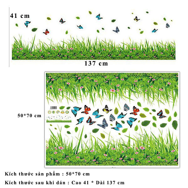 - Phù hợp để dán cho tất cả cả bề mặt, khô, nhẵn mịn Kích thước :Decal trang trí chân tường khu vườn hoa bướm cho bé XL7180