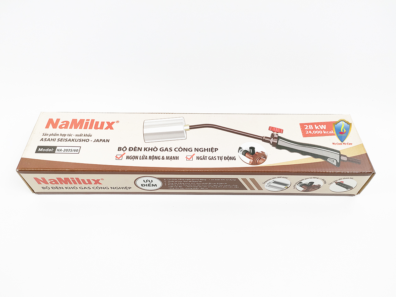 Bộ đèn khò gas công nghiệp Namilux NA-203S/60 là sản phẩm an toàn, tiện dụng, và rất phổ biến hiện nay. Đây là sản phẩm hợp tác xuất khấu ASAHI SEISAKUSHO - JAPAN. Với ống