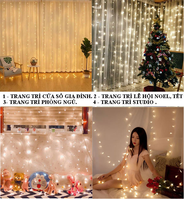 - Sử Dụng nguồn điện 110-220v với kích thước dài 10m tiện lợi trang trí được cả những cây thông Noel to lớn , những không gian nhà cửa lớn, cầu tháng , hành lang , hồ bơi , studio mà không cần phải mua nhiều bộ và cần nhiều ổ cắm .Số bóng đèn nhiều cho không gian bạn muốn trang trí phát sáng lung linh và ấm áp hơn.