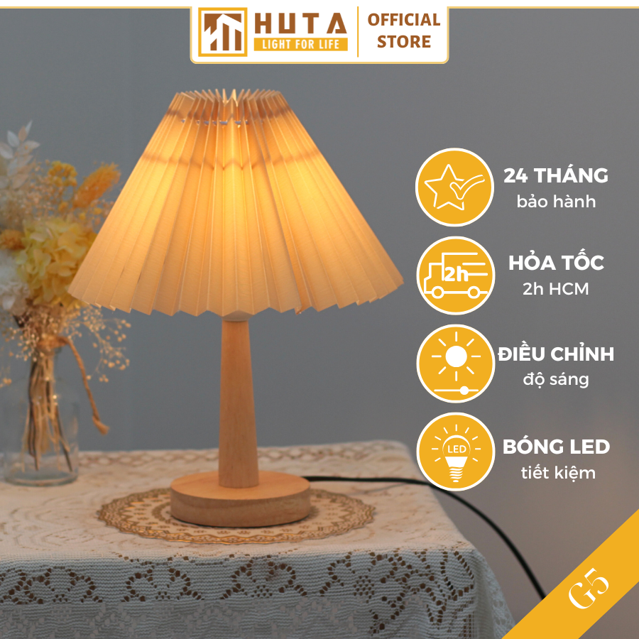 ✨Đèn Ngủ Để Bàn HUTA G5 Gỗ Chao Xếp Ly Vintage Dễ Thương, Decor Trang Trí Phòng Ngủ, Đọc Sách Đầu Giường, Điều Chỉnh Độ Sáng, Đèn Vàng Bóng LED Tiết Kiệm Điện