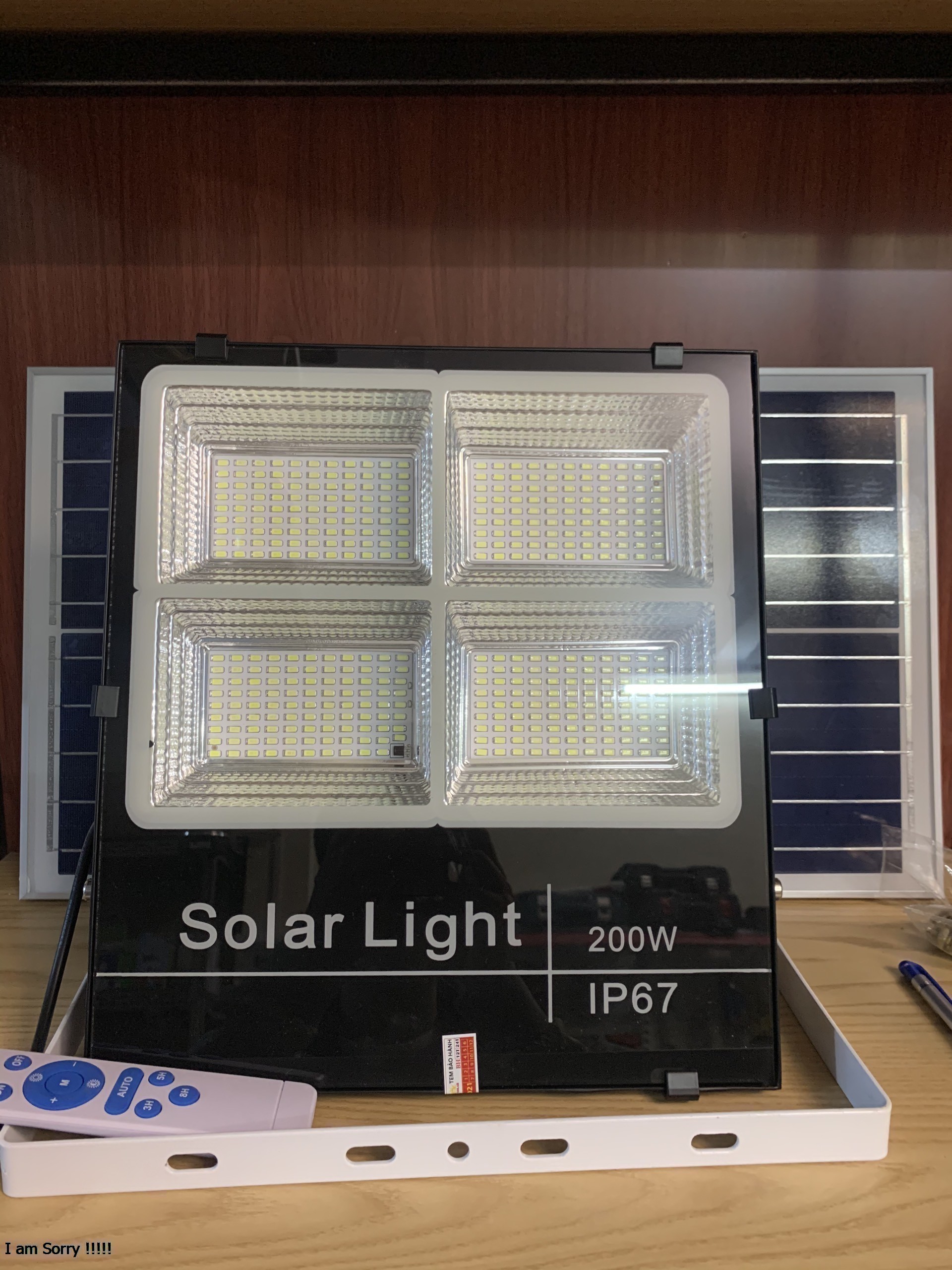 Mua tại TiktokĐèn pha năng lượng mặt trời 4 khoang công suất 200W- Tự động bật tắt khi trời tối | Mẫu 2021 Thông Số Kỹ Thuật Công Suất 200W ( 4 khoang ) Tấm pin 200W: 35*53cm- 6v/30W Pin 200W: 3.2V- 25.000 maH Thời gian sạc: 4-6h Tiêu chuẩn: IP67 Thơi gian sử dụng: 8-14h Bảo Hành: 2 năm