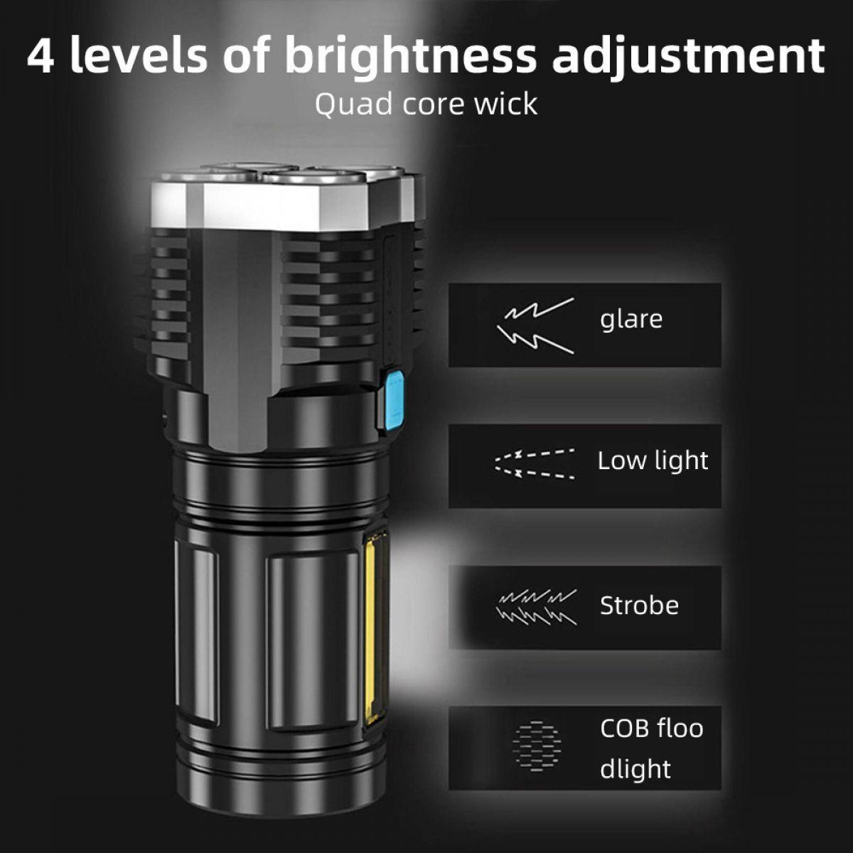 Bốn chế độ ánh sáng, ánh sáng mạnh-ánh sáng yếu nhấp nháy-Thanh lõi sáng bên hông.