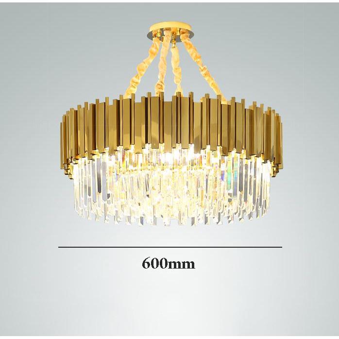 Thiết kế hiện đại, sang trọng thích hợp với nhiều không gian và phong cách nội thất khác nhau. THÔNG TIN CHI TIẾT SẢN PHẨM: Chao đèn: Là pha lê, được bọc trong hộp xốp