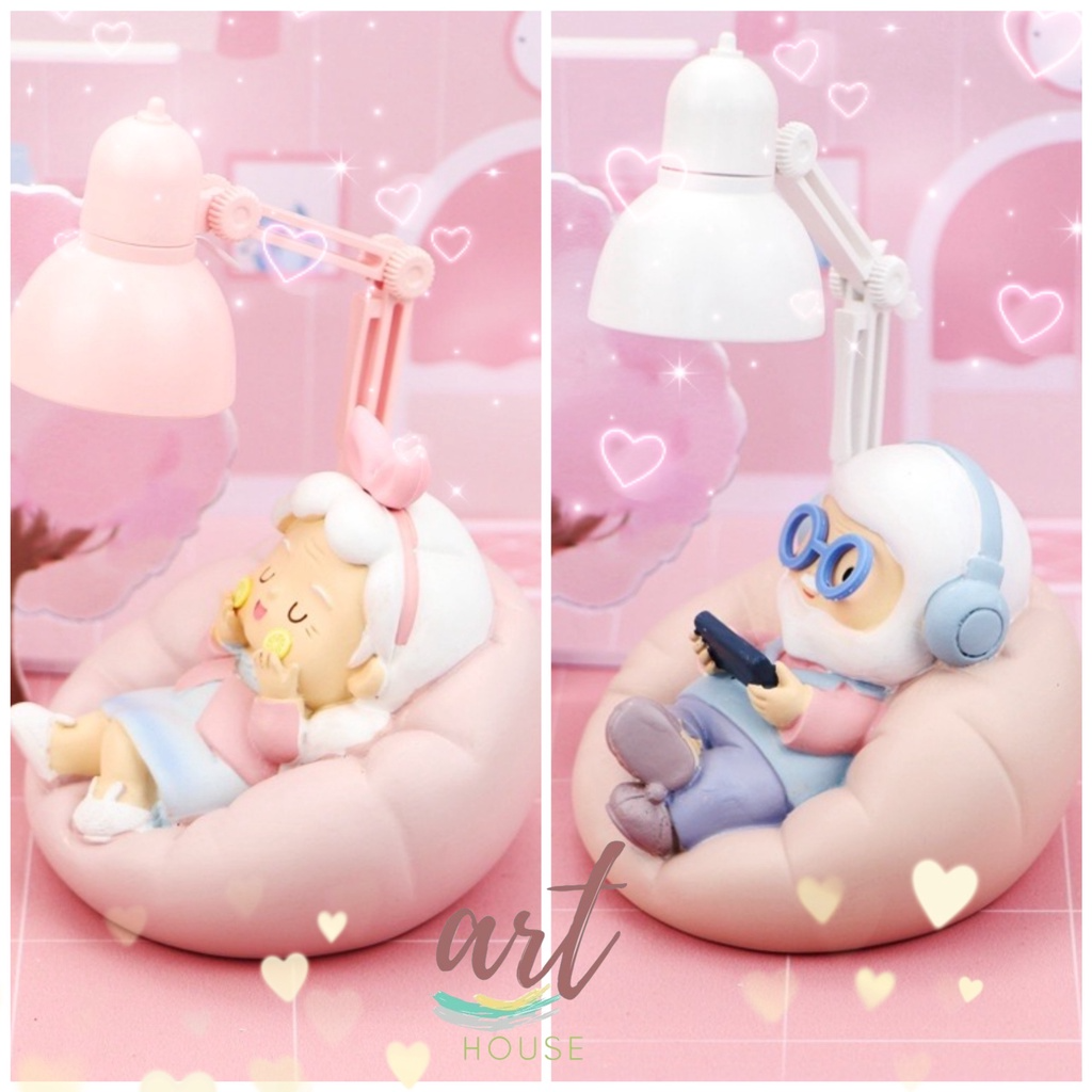 - Đèn trang trí hình ông nằm xem điện thoại và bà nằm đắp mặt nạ thư giãn.