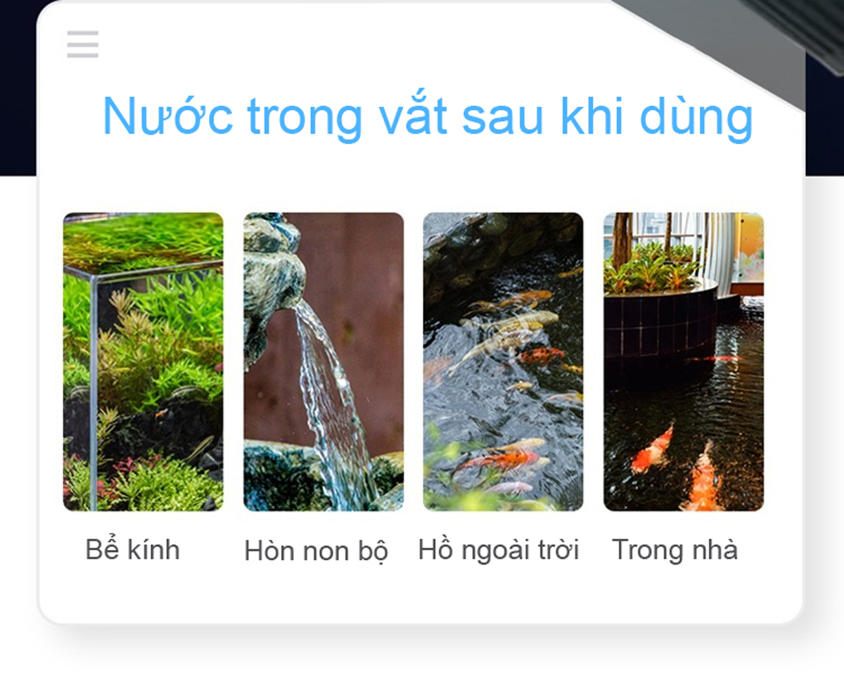 - Không gây nhiễm trùng cá, không làm đục nước, ngăn tảo sinh trưởng.
