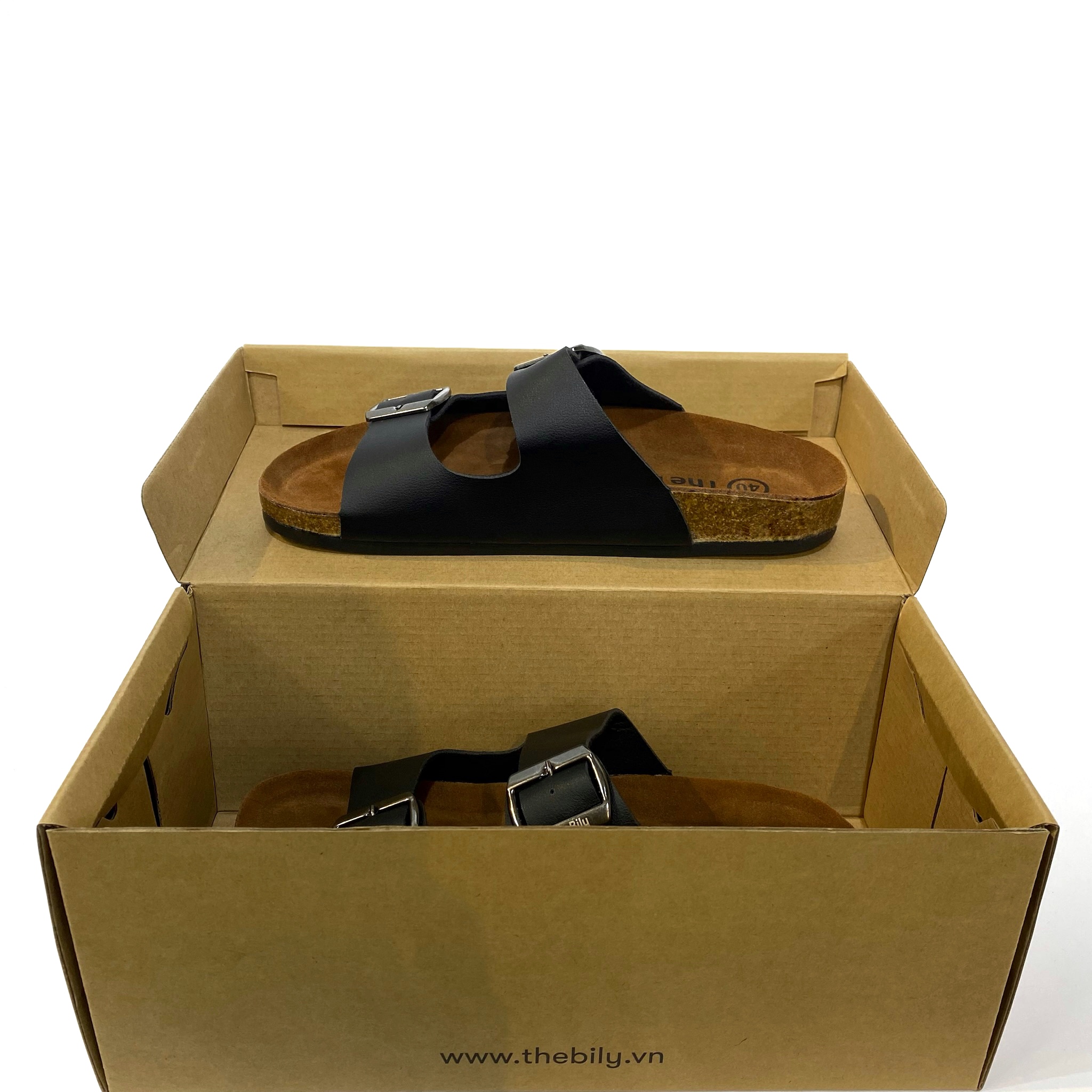 ✨Dép Đế Trấu Quai Ngang Nam 2 Khóa The BiLy Da PU Đen - BL01T