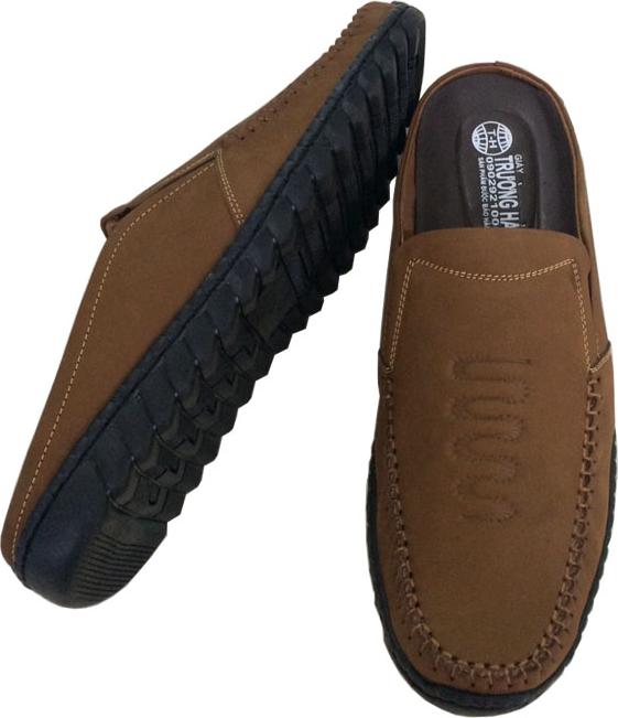 Dép bít mũi màu nâu Trường Hải da bò thật