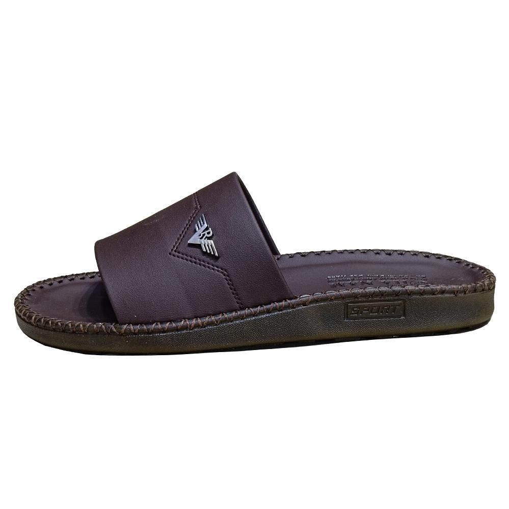 Dép nam Quai ngang một bản da bò thật đế cao 3.5cm chính hãng Trường Hải màu Nâu DNĐ156