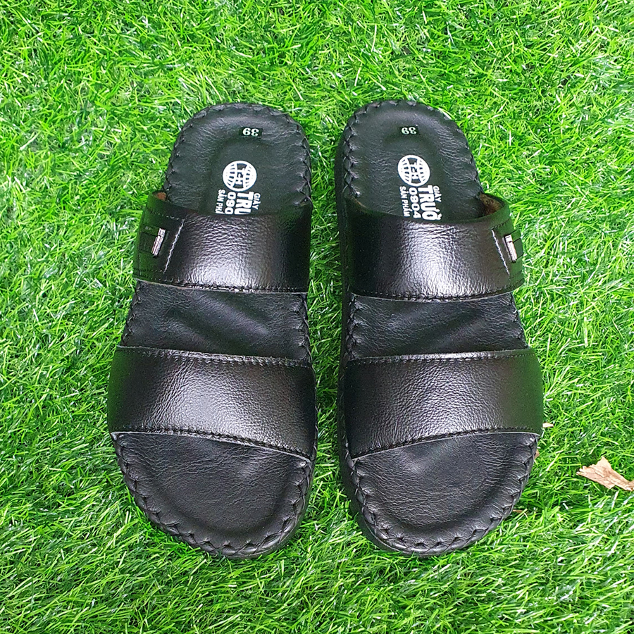 Dép da nam Quai ngang một bản da bò thật màu đen đế cao 2.5cm chính hãng Trường Hải DNĐ157