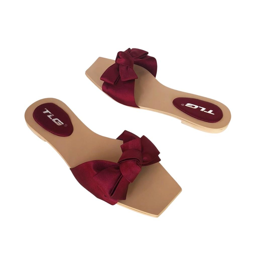 Dép nữ thời trang quai ngang thắt nơ xinh xắn da mềm êm chân D2