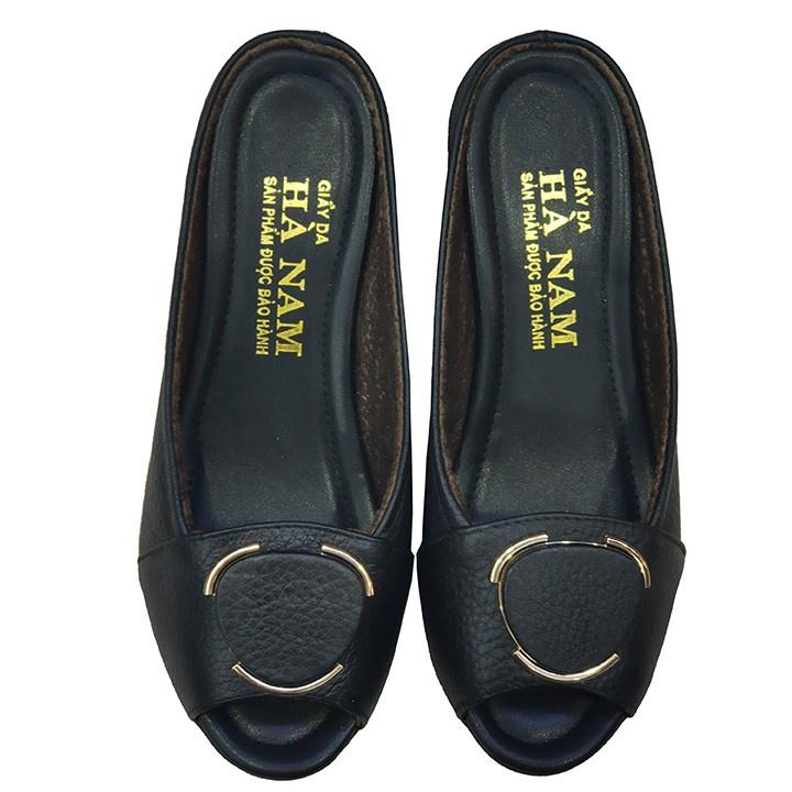 Dép nữ đế xuồng 5cm da bò thật