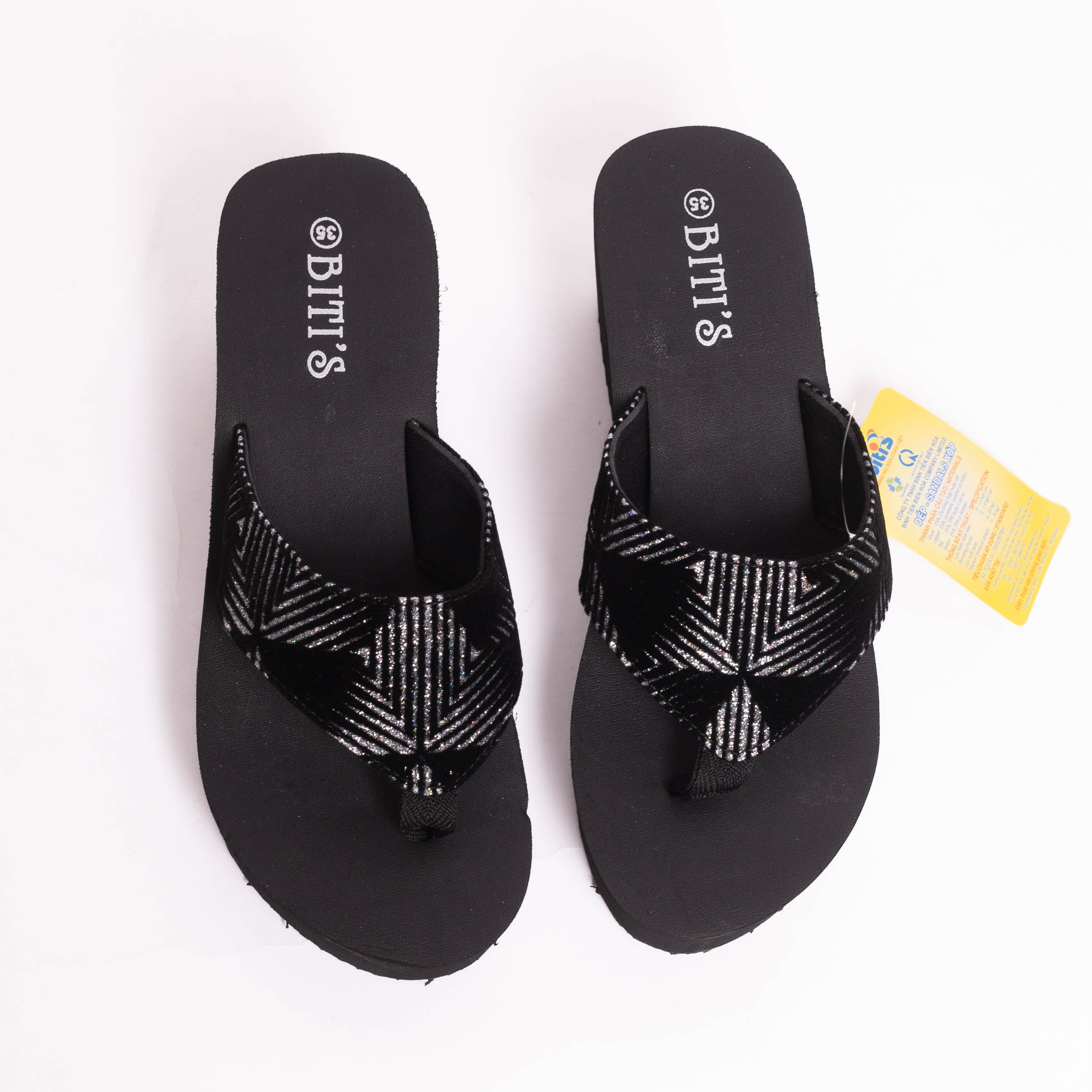 (V) Mô tả sản phẩm: DÉP KẸP NỮ BITI’S – NHẸ ÊM, NỮ TÍNH, DỄ PHỐI Size: 35 - 39 Màu sắc: - Đế xám quai đen đính đá(B) - Đế đen quai đen đính đá(B70) - Đế nâu nhạt quai đen đính đá(73) Mô tả sản phẩm: Dép kẹp nữ Biti’s là lựa chọn hoàn hảo cho nàng yêu thích sự đơn giản nhưng vẫn nổi bật. Thiết kế quai vải bản vừa, điểm nhấn là các hạt đá lấp lánh được đính tỉ mỉ tạo nét thanh lịch, nữ tính. Phần đế EVA nhẹ, êm ái giúp chống trơn trượt, giảm áp lực bàn chân khi di chuyển. Mặt đế có độ bám tốt, thích hợp sử dụng trong nhiều điều kiện thời tiết. Ưu điểm nổi bật: - Thiết kế dịu dàng, phù hợp đi chơi, đi biển, dạo phố - Đính đá thủ công tỉ mỉ, không bong tróc - Đế mềm, nhẹ, êm chân – dễ đi cả ngày dài - Cam kết chính hãng 100% từ thương hiệu Biti’s
