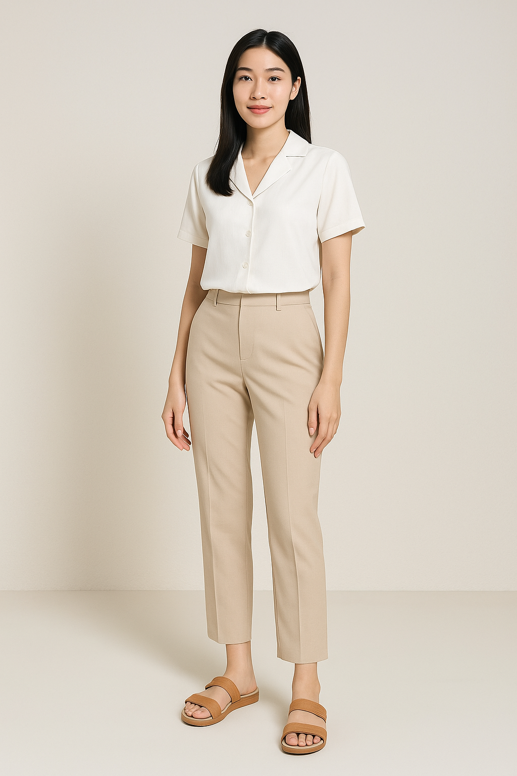 Màu be trung tính – dễ phối hợp với nhiều loại trang phục: váy, quần jeans, short,...