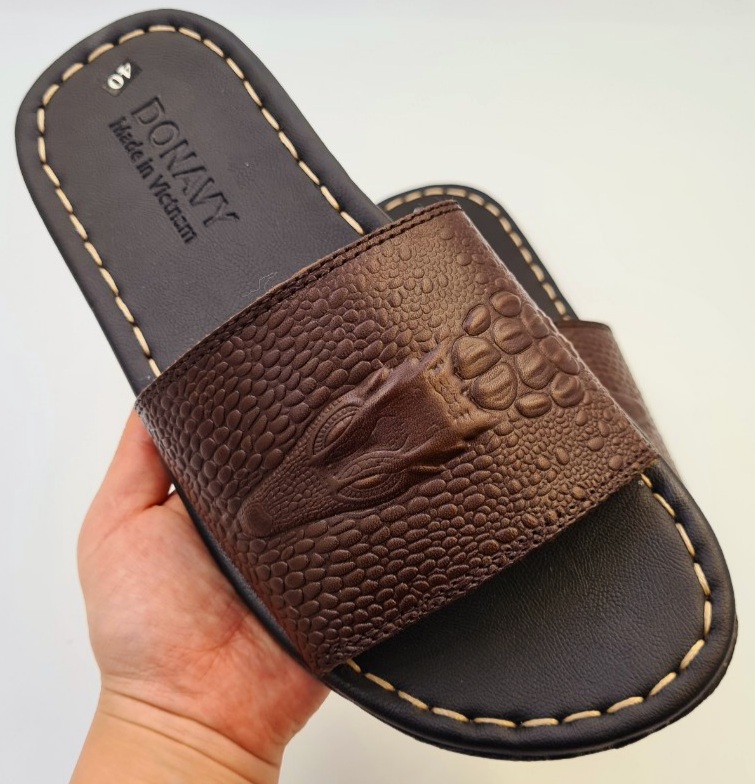 Mua tại TiktokDép Quai Ngang Nam Da Bò Thật 100%,DONAVY Kiểu Đầu Cá Sấu Đi Rất Nhẹ Và Êm DCSDN Chất liệu: Da bò thật 100% da bò tự nhiên Đế cao su tốt đi siêu êm, chống chơn, trượt. Da được may vào đế cẩn thận, đẹp bao đi nước Hàng đảm bảo giống hình