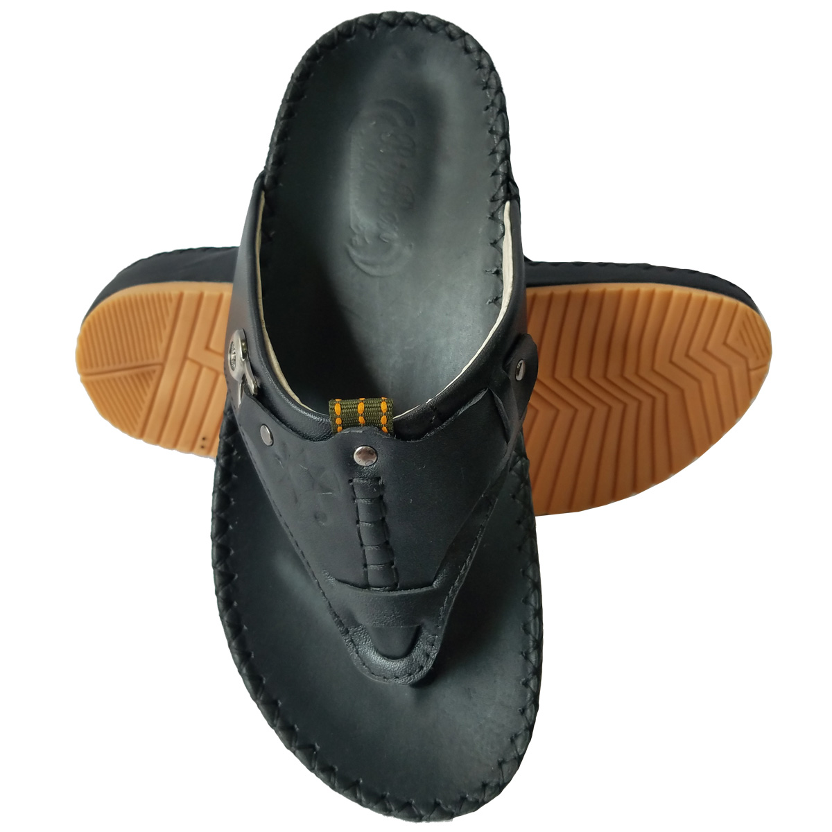Dép da nam xỏ ngón màu đen - da bò thật 100%