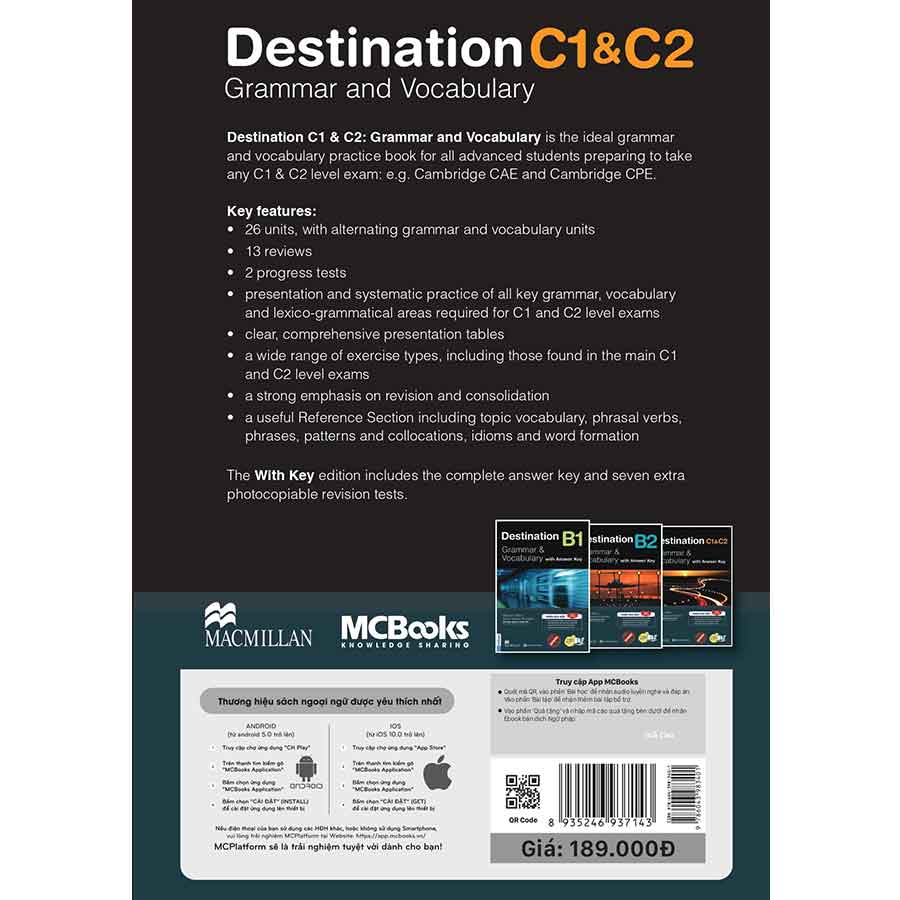 - Làm quen với đề thi để luyện tập và đạt kết quả cao trong kỳ thi thực tế. Hãy nhanh tay đặt mua ngay cuốn sách Destination C1 & C2 để việc học và ôn thi của các chứng chỉ tiếng Anh C1&C2 trở nên nhanh chóng và hiệu quả hơn nhé!