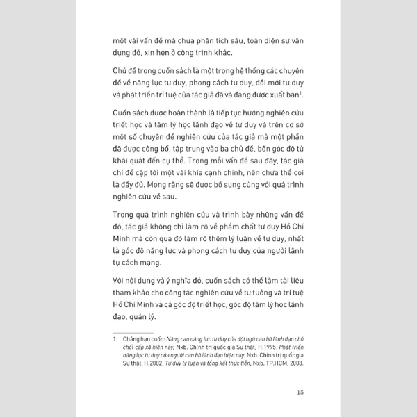 Trong quá trình nghiên cứu và trình bày những vấn đề đó, tác giả không chỉ làm rõ về phẩm chất tư duy Hồ Chí Minh mà còn qua đó làm rõ thêm lý luận về tư duy, nhất là góc độ năng lực và phong cách tư duy của vị lãnh tụ cách mạng này.