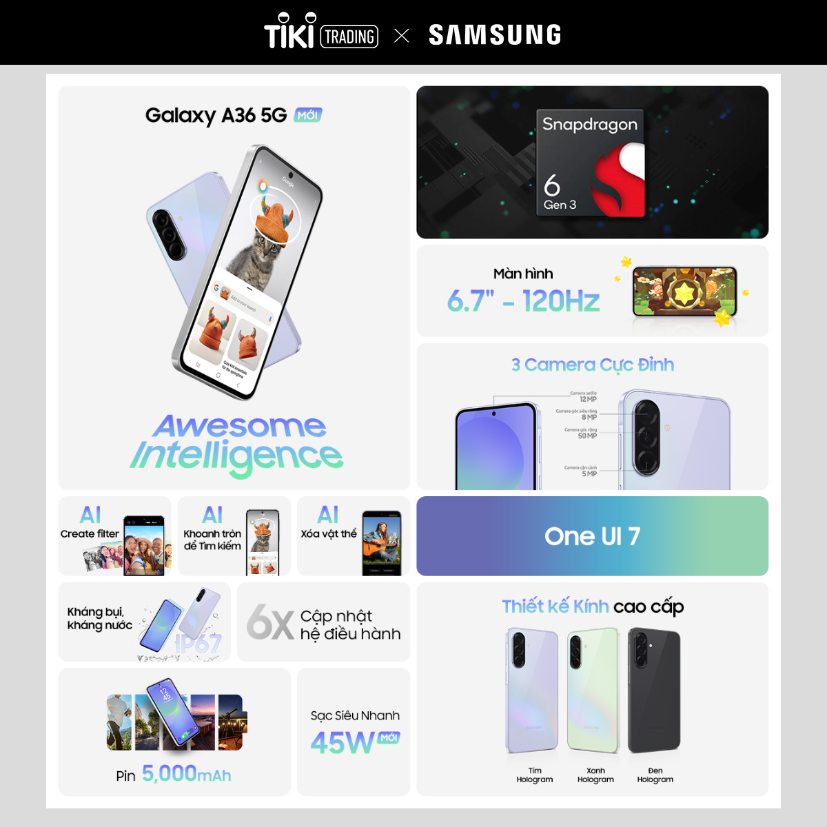 Mua tại TiktokĐiện thoại Samsung Galaxy A36 5G - Awesome Intelligence