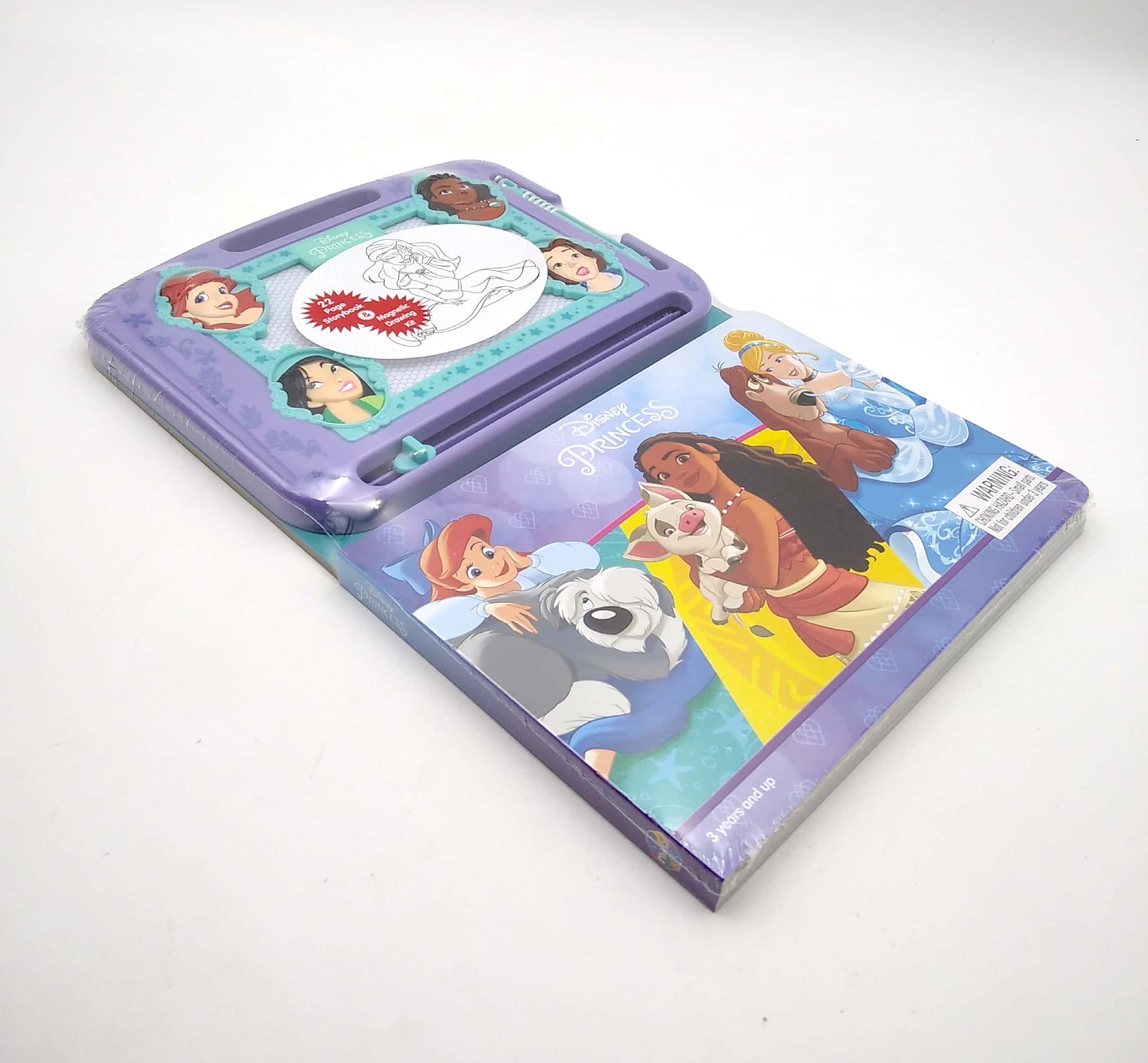 Jump into exciting adventures with the Disney Princesses and their favourite animal friends. Read the Colorful storybook and learn to draw a royal gallery of the princesses most loyal companions. Complete with step-by-step instructions, a drawing pad, and a reusable magnetic pen, children will have fun developing fine motor skills in the company of familiar faces, including Merida, Snow White, Moana, Pocahontas, Tiana, Mulan, Cinderella, Jasmine, and more! The magnetic drawing pad is erasable, so little artists can enjoy the book again and again. Draw on!