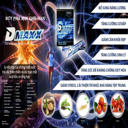 Dmaxx energy formula là sản phẩm thức uống năng lượng có chức năng bổ sung năng lượng cho người uống mỗi ngày dưới dạng thức uống hòa tan.