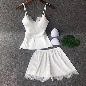 Set đồ bộ nữ quần đùi 2 dây phối ren chất satin