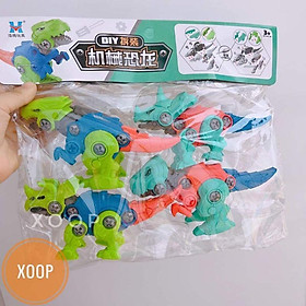 ✨Đồ chơi bộ lắp ráp 4 xe khủng long kèm Tovit, Mô hình khủng long tự lắp ghép