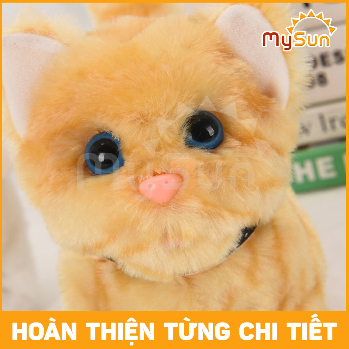 - Đồ chơi con mèo biết đi tiến lùi, biết vẫy đuôi, gật đầu và mô phỏng tiếng kêu như ngoài đời thực.
