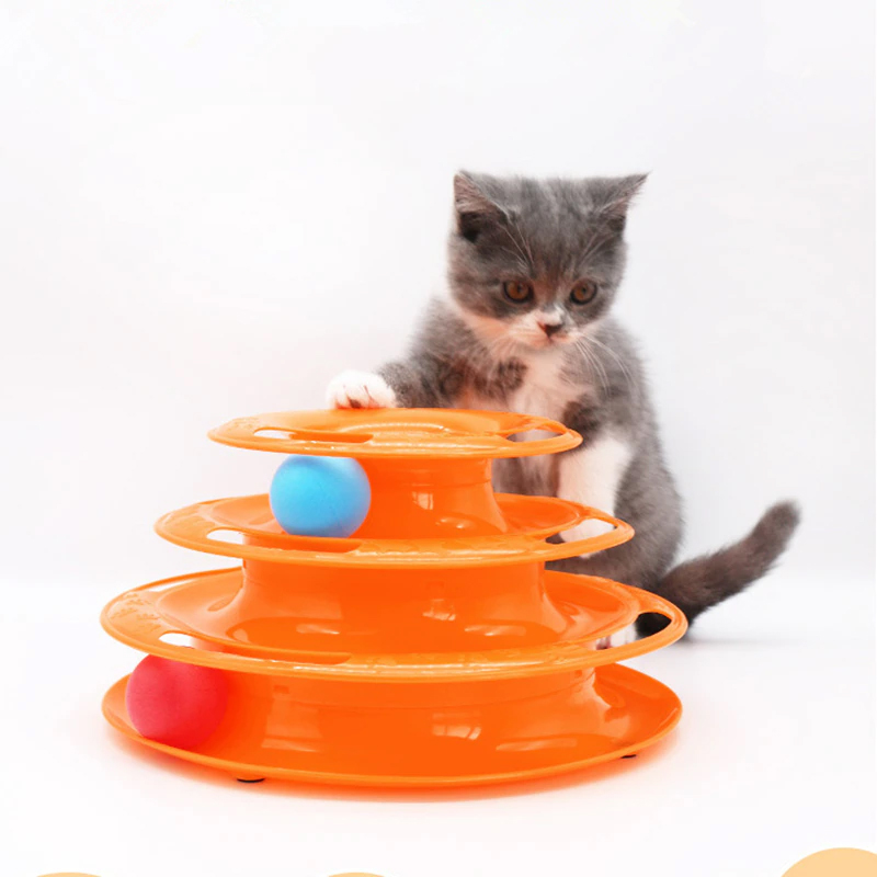 Mua tại TiktokCat Puzzle Toy Level 3 Wheel Interactive Play Plate Pet Cat Toy Training Track Ball Rotary Table Space Tower