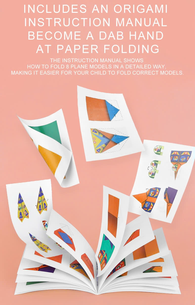 - 8 loại giấy gấp máy bay với 8 loại mô hình máy bay (3 tờ mỗi loại) – Tổng 24 tờ
