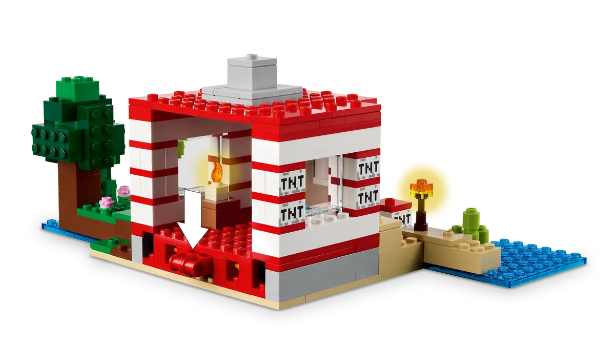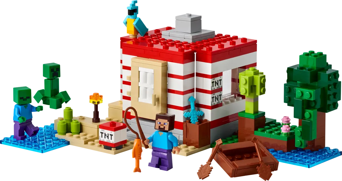 - Sâu trong khu rừng nhiệt đới, bạn sẽ tìm thấy ngôi nhà hình TNT tuyệt vời, nơi bạn có thể thư giãn, câu cá và chơi đùa với con vẹt thân thiện. Nhưng cẩn thận nhé – một con Creeper và zombie đang rình rập gần đó, và chúng sẵn sàng tấn công! Kích hoạt một vụ nổ để làm sập cả ngôi nhà. Khi bụi mù tan đi, hãy lắp lại ngôi nhà, sẵn sàng cho cuộc phiêu lưu tiếp theo.
