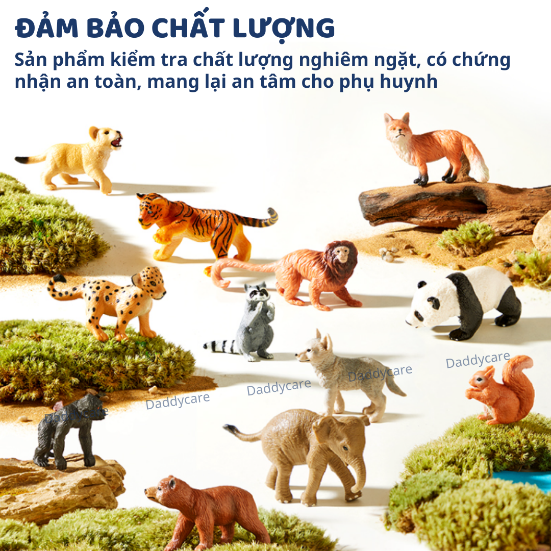 Bộ sưu tập 12 thú rừng Safari hoang dã (5-7 cm) Là sản phẩm dành cho bé từ 3 tuổi trở lên, bộ đồ chơi gồm 12 loài động vật hoang dã và 2 cây