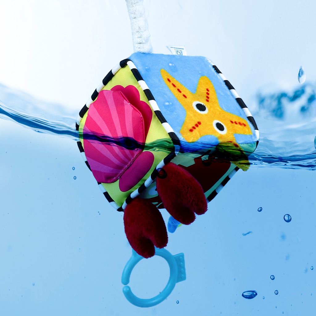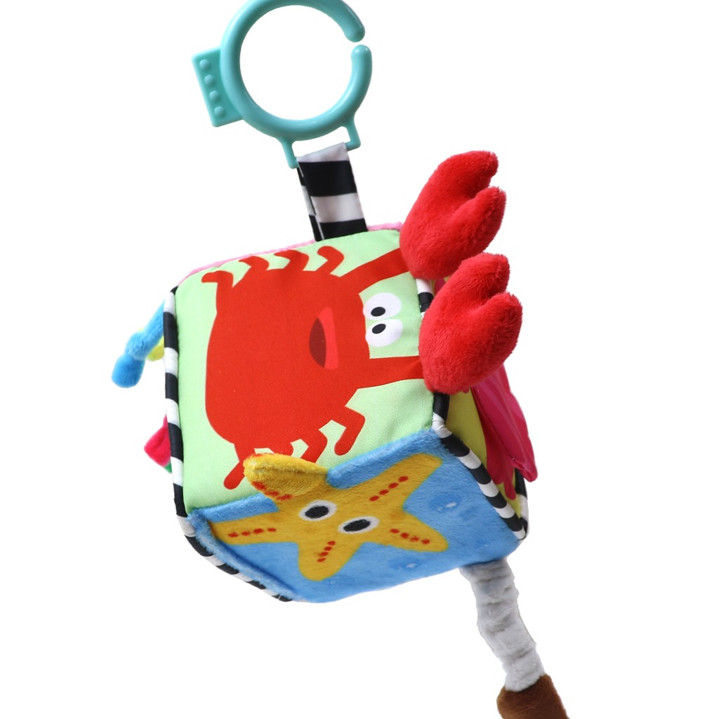 - Khối vải có 1 mặt đen trắng đóng vai trò như một treo nôi, bé sẽ được quan sát mặt đen trắng này khi treo khối lên. Mặt đen trắng này nhằm kích thích phát triển thị giác cho bé. Sản phẩm có móc nhỏ dễ dàng cho việc treo lên cao.