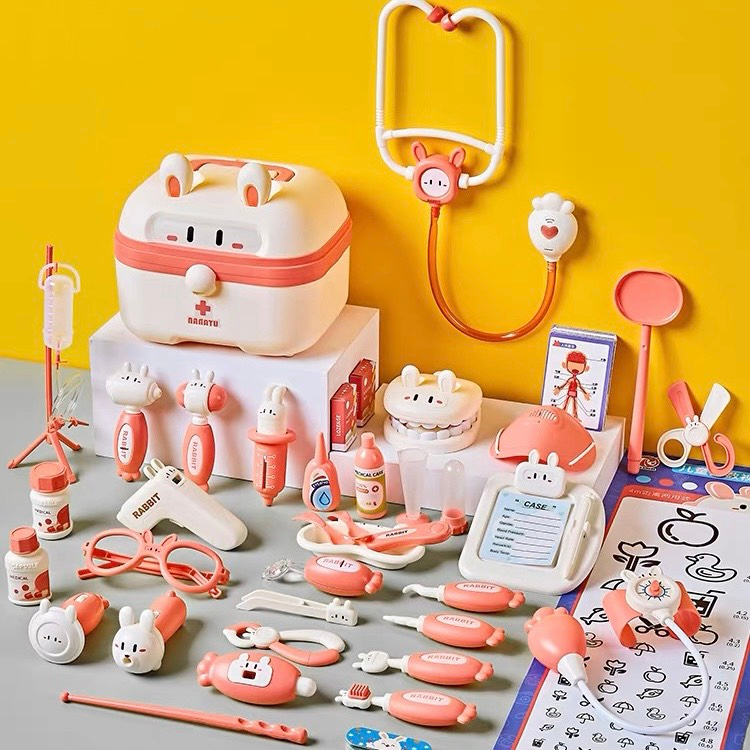 Bộ Đồ Chơi Bác Sĩ Hình Thỏ Cho Bé Đủ Chi Tiết Có Hộp Đựng Dành Cho Bé Trai Bé Gái 36 Chi Tiết Combo đồ chơi bác sĩ