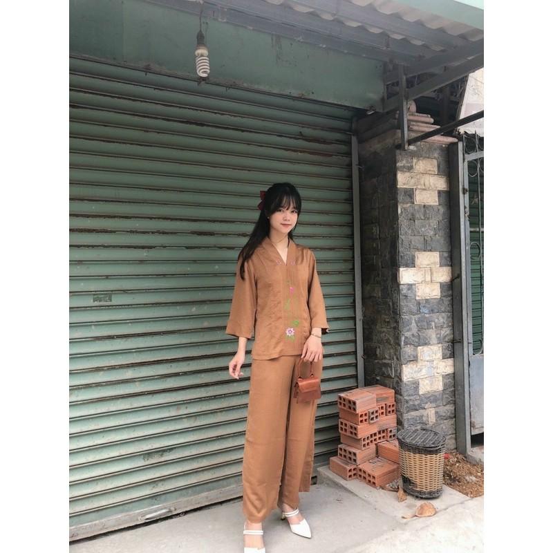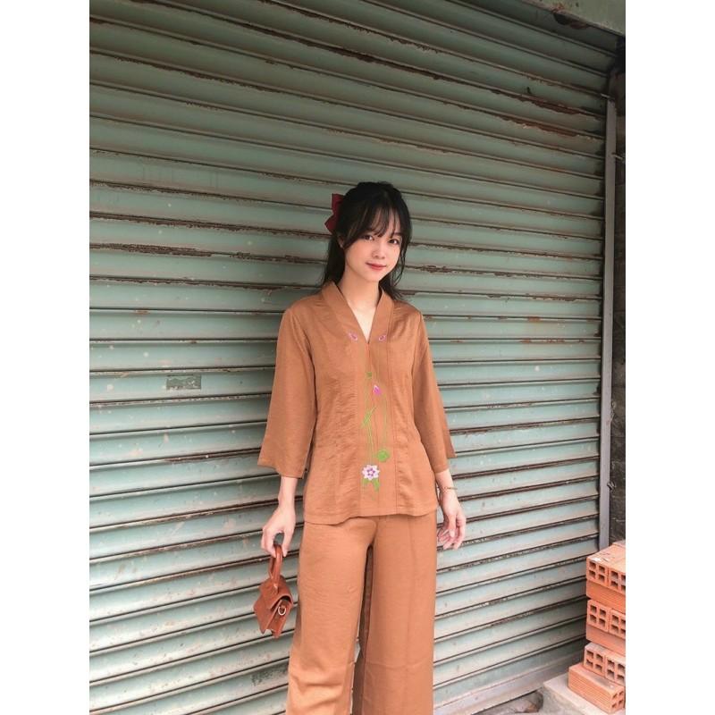 Bộ đi chùa thêu chữ tâm | Pháp Phục Phương Linh
