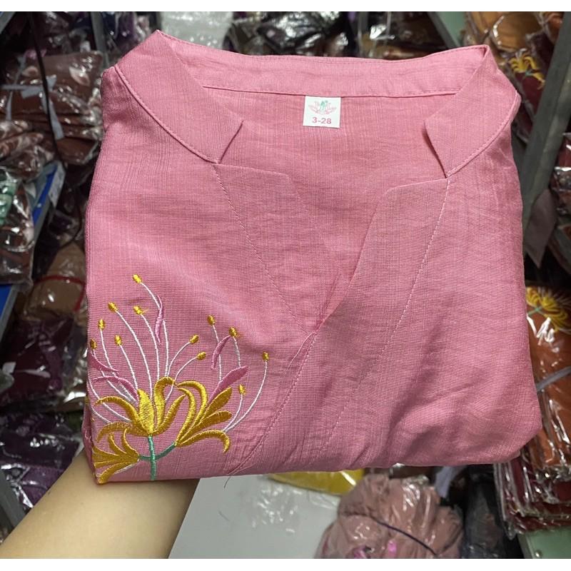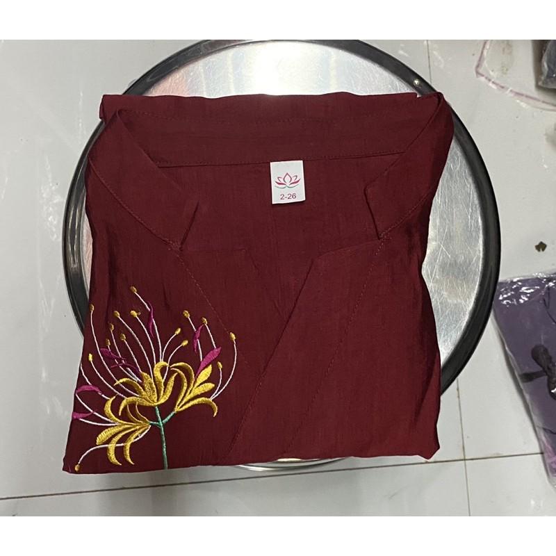 Mẫu pháp phục nữ - quần áo Phật tử đi chùa, đồ lam chất kate lụa mềm có co giãn Sen Hồng 0898553583