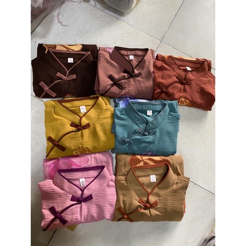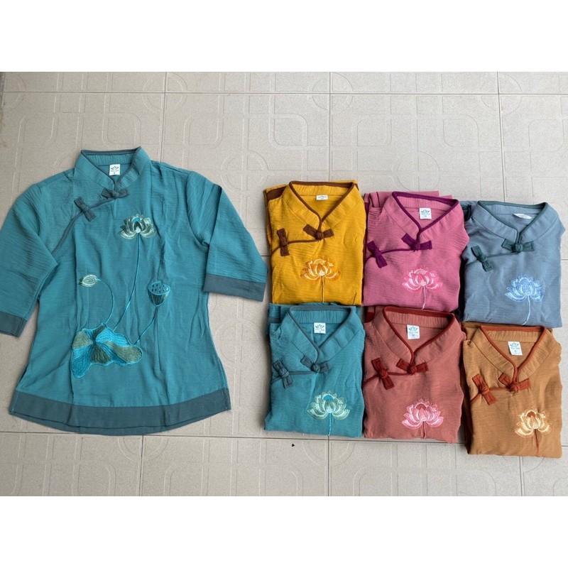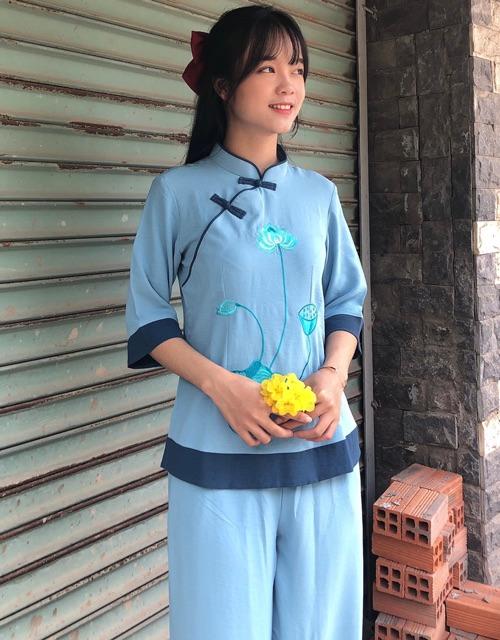 Quần áo phật tử, đồ lam đi chùa mẫu tơ phối thêu hoa