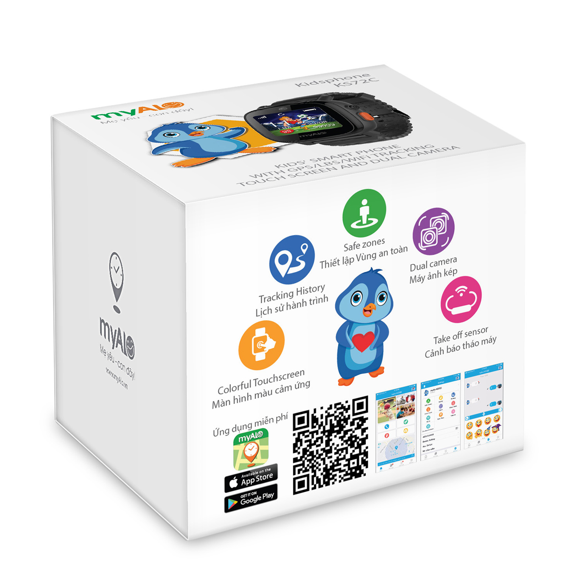 - Liên lạc thường: Bạn cũng có thể thêm những liên lạc chỉ có chức năng gọi điện 2 chiều vào danh bạ cho trẻ. Điện thoại myAlo KS72C và Ứng dụng myAlo myKids được thiết lập sẵn nhiều hình ảnh sinh động để bạn lựa chọn làm ảnh đại diện cho các liên lạc trong danh bạ của trẻ, mang lại sự thú vị và ấn tượng đẹp cho trẻ. Kết bạn Hãy trao cho trẻ những cơ hội được liên lạc với bạn bè sau khi tan trường! Điện thoại myAlo KS72C giúp trẻ có thể tự thêm bạn bè của mình vào danh bạ liên lạc bằng cách kết bạn với các điện thoại cùng loại thông qua Bluetooth. Khi kết bạn thành công, trẻ có thể gọi điện và gửi tin nhắn thoại 2 chiều với bạn bè của mình. Ứng dụng myAlo myKids sẽ giúp Bạn biết được toàn bộ danh sách điện thoại bạn bè của trẻ và bạn có toàn quyền kiểm soát danh sách này. Bạn có thể xóa bỏ bất kỳ số liên lạc nào trong danh sách bạn bè của trẻ ra khỏi danh bạ của Điện thoại KS72C bất cứ lúc nào. BẢO VỆ KỊP THỜI Sự an toàn của con trẻ luôn là mối quan tâm hàng đầu của các bậc cha mẹ, điện thoại myAlo KS72C được thiết kế như một vệ sỹ ảo luôn đồng hành bên cạnh trẻ, giúp bạn bảo vệ sự an toàn cho trẻ và mang đến cho trẻ một không gian thoải mái và tuyệt vời nhất Nút khẩn cấp SOS Con bạn có thể gửi một cảnh báo khần cấp SOS bất cứ lúc nào chúng cần. Đừng lo lắng, hãy dành cho trẻ không gian thoải mái để vui chơi! Điện thoại myAlo KS72C được tích hợp sẵn nút khẩn cấp SOS, khi gặp nguy hiểm hoặc cần trợ giúp, trẻ chỉ cần nhấn và giữ vào nút SOS trong 3 giây, nó sẽ gửi đồng thời cho cả bạn và những người giám hộ một cảnh báo tức thì kèm theo vị trí của con bạn và một bản ghi âm 15 giây về môi trường xung quanh trẻ ngay lập tức. Vùng an toàn Thật tuyệt vời, ngay bây giờ bạn sẽ cảm thấy thoải mái và yên tâm hơn về sự an toàn của trẻ với công nghệ cảnh báo an ninh tiên tiến của chúng tôi. Ứng dụng myAlo myKids đi tiên phong trong việc cho phép bạn có thể thiết lập nhiều vùng an toàn với các địa điểm mà trẻ thường xuyên đến theo lịch trình từng ngày trong tuần với các khung thời gian khác nhau. Hệ thống định vị GPS/LBS/Wifi tích hợp trên điện thoại myAlo KS72C sẽ giúp bạn giám sát trẻ, nếu phát hiện trẻ ra khỏi hàng rào an toàn đã thiết lập, nó sẽ gửi một cảnh báo đến trung tâm tin nhắn cho bạn kèm theo vị trí của trẻ Chế độ Bận học Chế độ “Bận học” mang đến cho trẻ một không gian thật sự yên tĩnh khi học tập. Khi kích hoạt chức năng này, bạn hoàn toàn yên tâm rằng điện thoại myAlo KS72C sẽ hoàn toàn yên lặng trong suốt thời gian học tập của trẻ, nó vẫn âm thầm giúp bạn giám sát trẻ, các chức năng trên điện thoại myAlo KS72C sẽ bị khóa và nó chỉ cho phép trẻ liên lạc với người thân với nút khẩn cấp SOS. Ứng dụng myAlo myKids cho phép bạn có thể thiết lập 19 lịch học tập cho bé theo lịch học từng ngày trong tuần với các khung thời gian khác nhau. Báo thức Ứng dụng myAlo myKids cho phép bạn cài đặt 5 lịch báo thức cho điện thoại KS72C để nhắc nhở bé thời gian bắt đầu hoặc kết thúc nhiệm vụ GIÁM SÁT TỪ XA Định vị chính xác Điện thoại myAlo KS72C sử dụng kết hợp 3 công nghệ định vị GPS, LBS và Wi-Fi để bạn có thể theo dõi vị trí con trẻ bằng Ứng dụng myAlo myKids bất cứ khi nào bạn cần. Lịch sử hành trình Ứng dụng myAlo myKids sẽ lưu lại lịch sử di chuyển và cho phép bạn xem lại lịch sử hành trình hàng ngày của trẻ trong 3 tháng gần nhất Nghe từ xa Ứng dụng myAlo myKids cho phép bạn thực hiện cuộc gọi tự động từ myAlo KS72C đến điện thoại của bạn và bạn có thể hòa mình vào môi trường của con mình bằng cách nghe âm thanh xung quanh con trong thời gian thực Cảnh báo tháo máy Điện thoại myAlo KS72C được tích hợp sẵn sensor cảm biến tháo máy, khi bạn kích hoạt chức năng này trong ứng dụng myAlo myKids, nó sẽ gửi tin cảnh báo đến cho bạn khi phát hiện trẻ tháo điện thoại ra khỏi tay. Cảnh báo sắp hết pin Bạn có thể thiết lập chế độ "Dự trữ nguồn điện khẩn cấp" cho điện thoại myAlo KS72C trong Ứng dụng myAlo myKids. Khi nguồn điện dự trữ trong pin của điện thoại myAlo KS72C thấp hơn 20%, nó sẽ gửi đến cho bạn một thông báo "... Đồng hồ sắp hết pin! ...", kèm theo vị trí định vị của nó. Cảnh báo tắt máy Mỗi khi tắt máy, Điện thoại myAlo KS72C sẽ gửi cho bạn một thông báo kèm theo vị trí định vị của nó. Cấm tắt máy Để ngăn ngừa trẻ tắt nguồn của điện thoại myAlo KS72C, ứng dụng myAlo myKids cho phép bạn thiết lập chế độ "Cấm tắt máy" để bạn quản lý điện thoại của trẻ dễ dàng hơn. TẠO CẢM HỨNG Camerra kép Điện thoại myAlo KS72C được tích hợp sẵn camera kép, một phía trước và một phía trên, giúp trẻ dễ dàng ghi lại những hình ảnh mong muốn và lưu trữ trong thư viện ảnh. Thư viện ảnh Trẻ có thể xem lại các 
