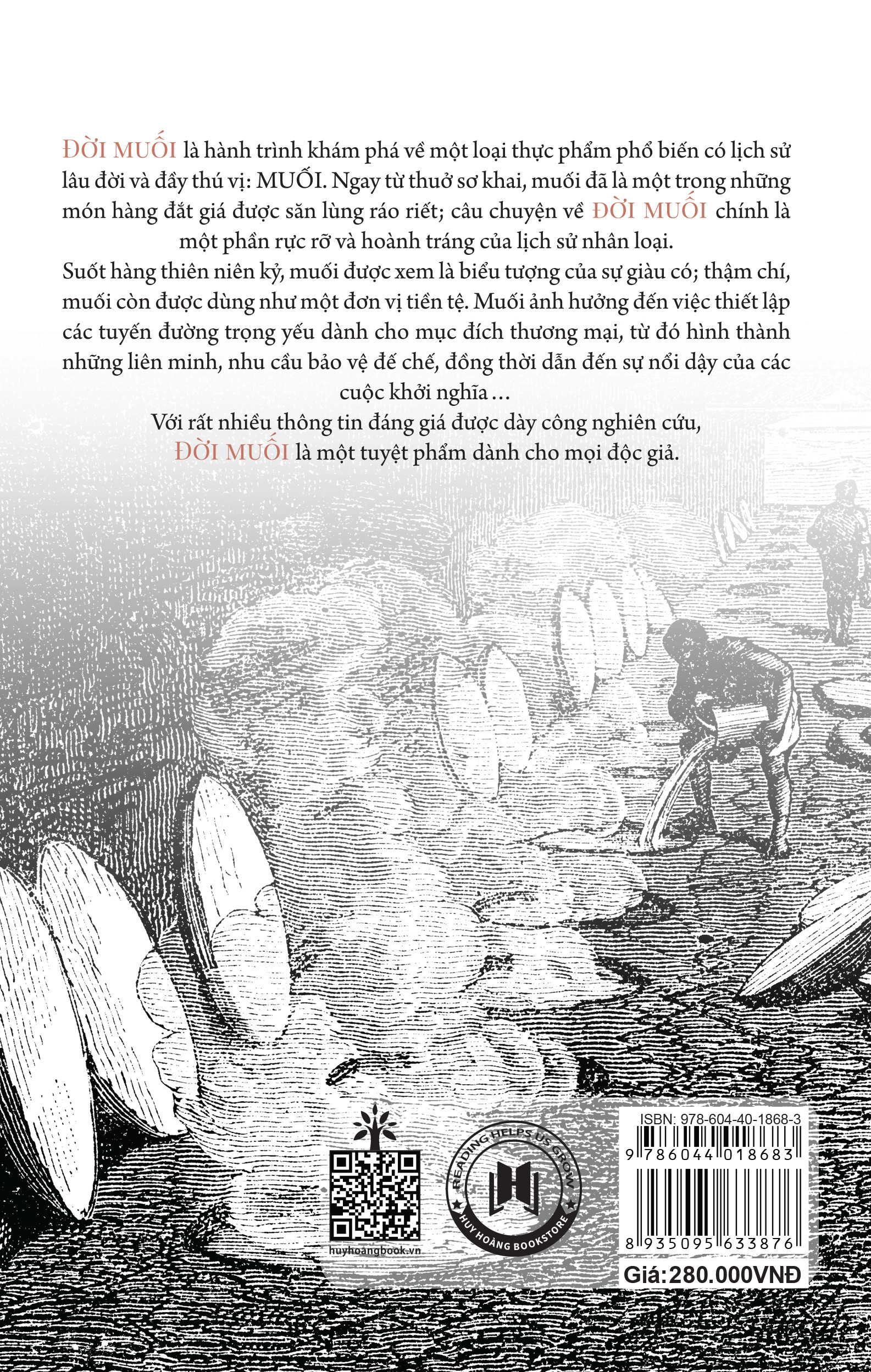 “Homer gọi muối là vật chất thần thánh, Plato miêu tả muối là vật mà các vị thần đặc biệt yêu thích, và sau đây chúng ta sẽ chỉ ra tầm quan trọng của muối trong các nghi thức, ràng buộc tôn giáo và các loại bùa phép.” - Ernest JonesĐỜI MUỐI là hành trình khám phá về một loại gia vị phổ biến có lịch sử lâu đời và đầy thú vị: MUỐI. Ngay từ thuở sơ khai, muối đã là một trong những món hàng đắt giá được săn lùng ráo riết; câu chuyện về ĐỜI MUỐI chính là một phần rực rỡ và hoành tráng của lịch sử nhân loại.