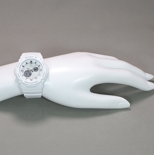 Thỏa mãn vị giác với mẫu đồng hồ BABY-G màu kẹo. Vỏ và dây đeo đẹp mắt phủ lớp hoàn thiện mờ kết hợp với đường gờ và vạch chỉ giờ bằng nhựa resin trong
