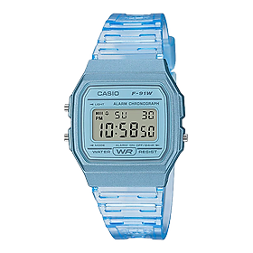 Đồng Hồ Casio Điện Tử F-91WS-7DF Dây Nhựa Trong - Mặt Vuông