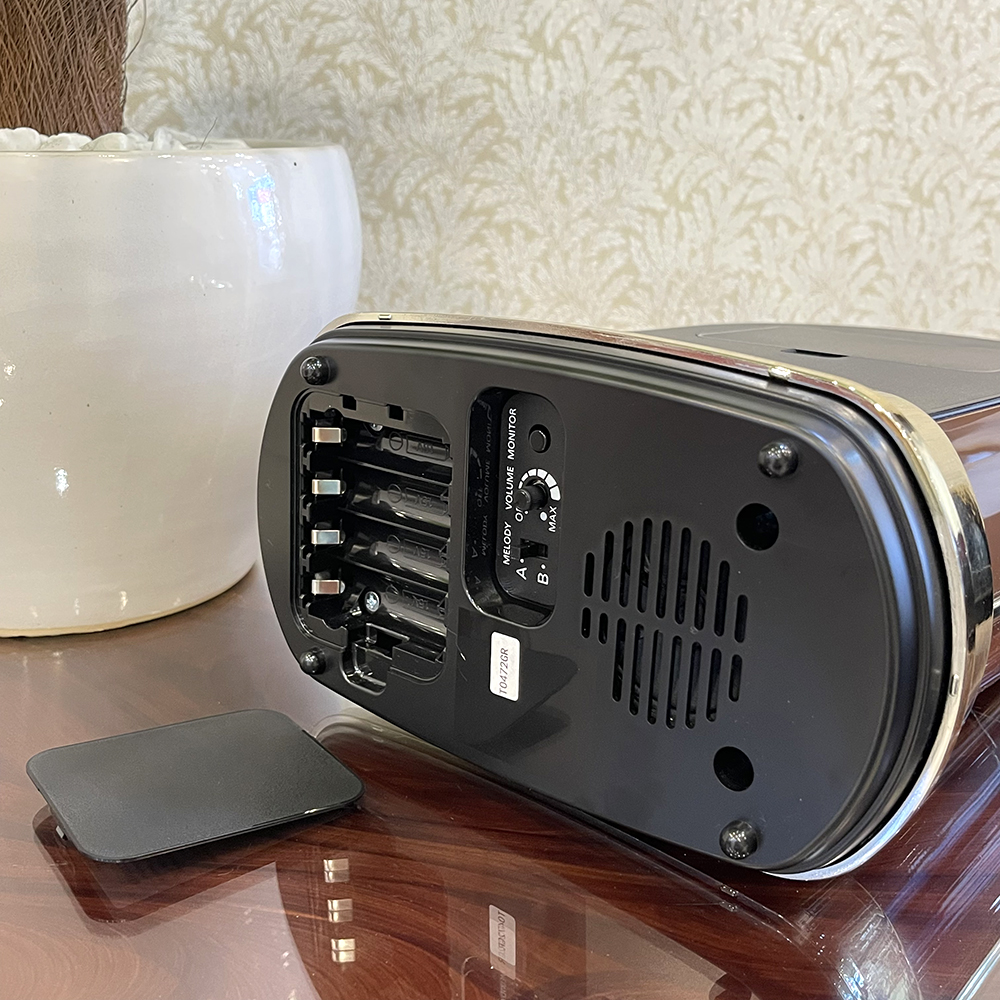 Mua tại TiktokĐồng hồ để bàn Nhật Bản Rhythm 4RH791WU23, dùng 4 pin tiểu (AA x 4). Vỏ nhựa màu nâu vân gỗ / mạ vàng siêu bền màu. Kích thước 21.2 x 28.8 x 12.0cm, trọng lượng 1.03kg. Âm thanh siêu trầm CTS ( Clarion Tone System ) độc quyền của Rhythm cho chất âm trầm, vang với 30 giai điệu bất hủ, 6 bản giáng sinh, nhạc chuông nhà thờ Westminster mỗi đầu giờ. Núm chỉnh âm lượng tiện. Mắt Cảm ứng ánh sáng tự động không phát nhạc khi thiếu sáng. Cum lắc xoay cẩn pha lê .