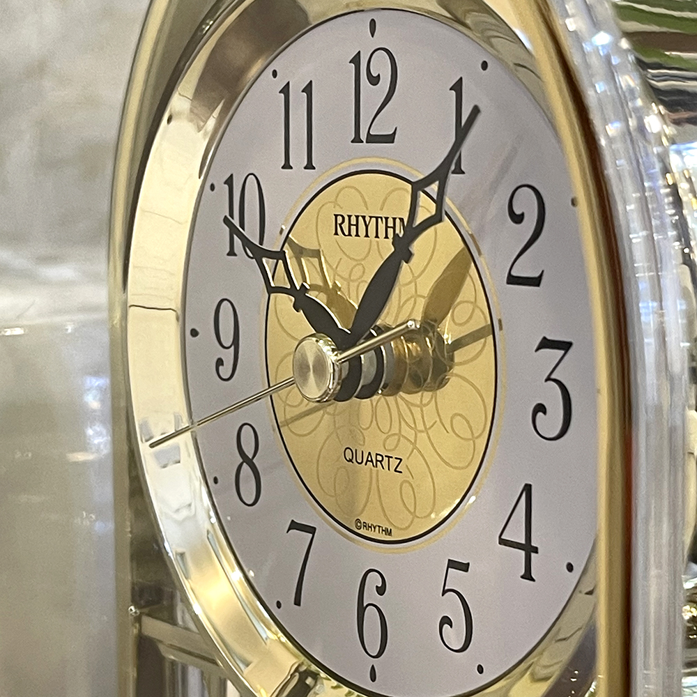 Đồng hồ để bàn Nhật Bản Rhythm 4RP796WS18, dùng pin (AAx2), vỏ nhựa cao cấp mạ vàng kết hợp mica trong suốt nhìn xuyên thấu, Kích thước 14.0 x 22.8 x 8.3cm, trọng lượng 390g. Quả