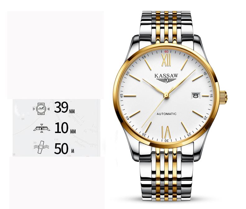 Đồng hồ nam chính hãng Kassaw Thụy Sỹ Thiết kế sang trọng, đẳng cấp cho quý ông Thời gian trữ cót lâu lên đến 40h Chống nước 5ATM, Kính sapphire Toàn bộ máy được làm